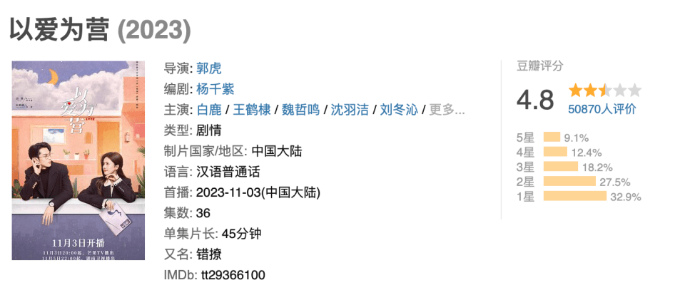 近期一部《以爱为营》开播之后,让不少人感到落差特别大。