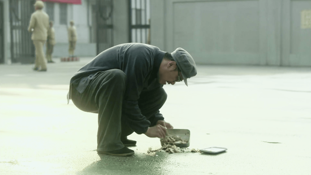 刘威葳饰演的爱国护士的身上被撒上食物,施刑者放恶犬撕咬;
