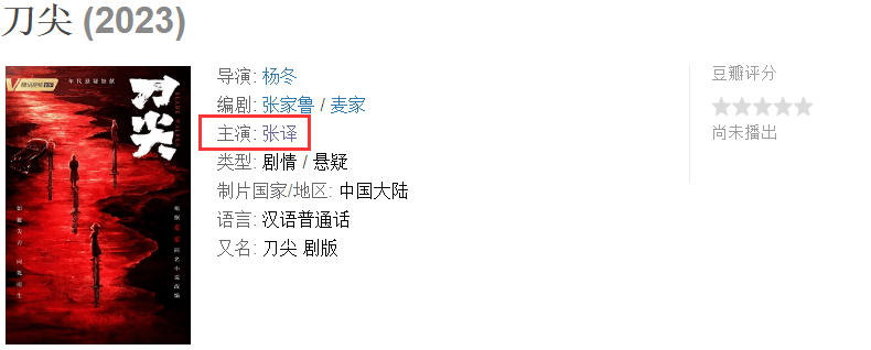 导演是杨冬,他之前和张译合作过《重生》《重生之门》,在豆瓣词条里,张译依然是主角。