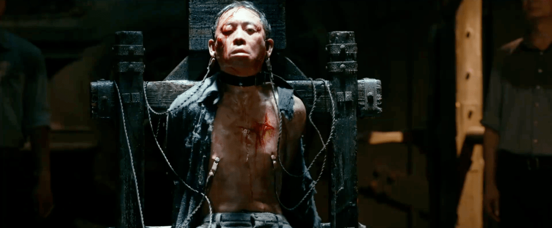 《悬崖之上》里有一段大尺度戏,张译夹胸受电刑,被折磨到皮开肉绽,甚至失禁。