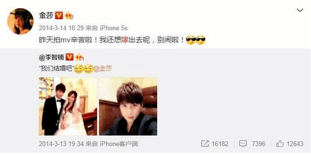 其实金莎想要谈场恋爱并不难,当时和她一起出演《十八岁的天空》中石延枫的扮演者李智楠就曾对金莎示爱,但可能面临雪藏的他前景发展并不好,因此2014年李智楠公开求婚金莎,也换来的是拒绝。