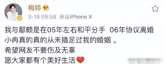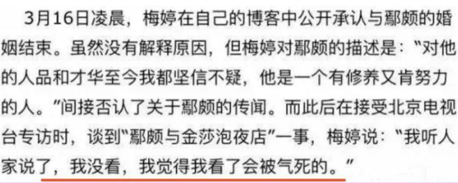 当时有媒体询问梅婷有没有看到金莎与鄢颇被拍的照片,梅婷直言自己根本没有看,看了会被气死,而梅婷面对李小冉与鄢颇的绯闻时,却专门为她澄清,称李小冉没有破坏过自己的婚姻,梅婷的态度也“锤死”了金莎插足的传闻
