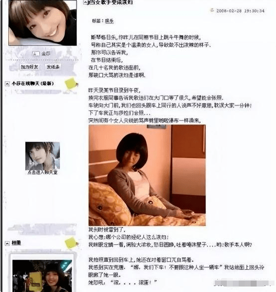 但这还不算完,金莎还发文怒斥对方是个“泼妇”,不依不饶地写了《当女歌手变成泼妇》《出阴招是一种艺术》《2008年3月2日的日记》三篇文章,继续抨击斯琴格日乐。