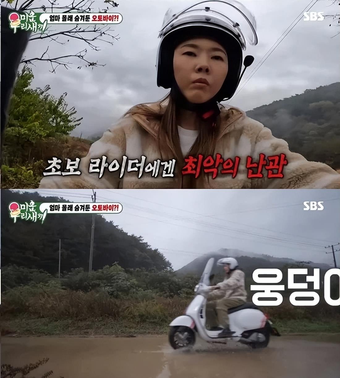 骑着摩托车的韩慧珍看上去像个新手,说:“我想潇洒地出去,但我不能”,果然,刚出发,就发生了摩托车翻车事故,幸好韩惠珍能迅速从摩托车上逃出,没有受伤。韩惠珍还很紧张地喊了一声“妈妈”,韩惠珍的妈妈表示,当她着急的时候,她就会喊妈妈。