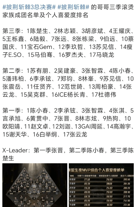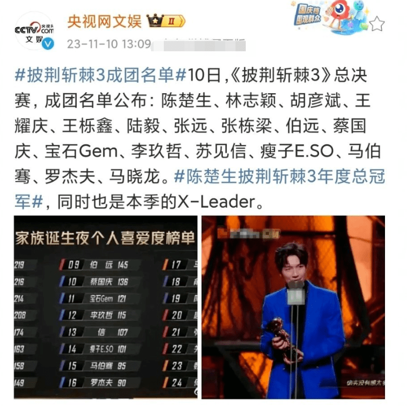 此前网上就曝出了陈楚生是C位 X-leader的双冠军,还有其他人员的成团名单。