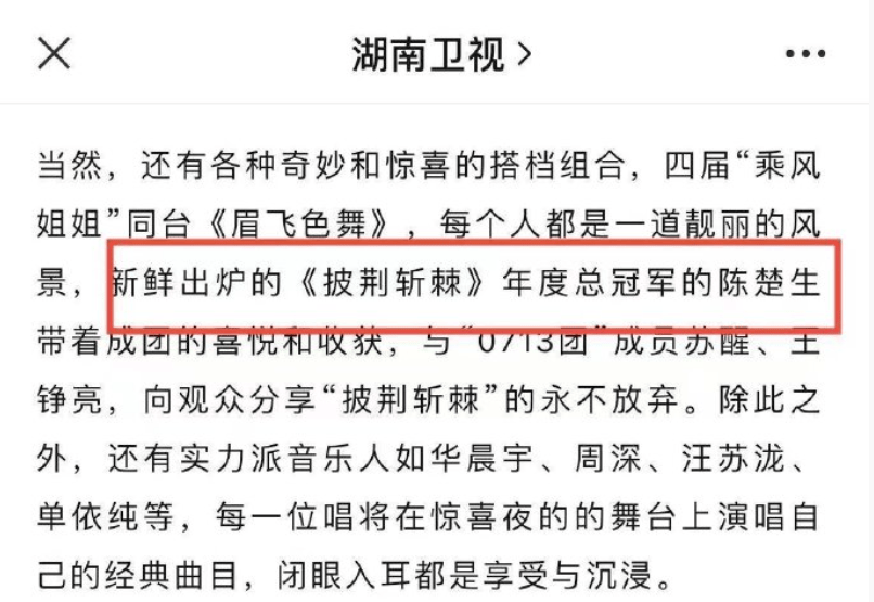 芒果台、央视网也都官方认证了陈楚生的冠军头衔,称得上是实至名归的总冠军。