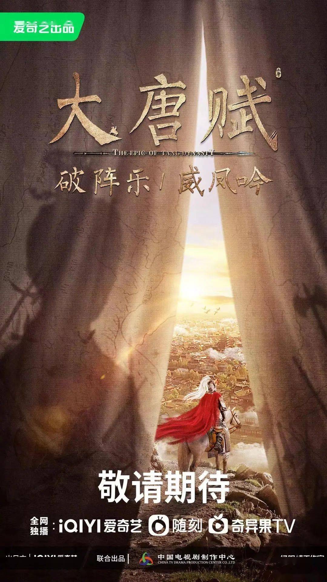 剧集看点:《大唐赋》系列将分上下两部,第一部为《破阵乐》,讲述热血少年李世民在隋末乱世中寻找家族和国家命运的出路,并实现自我成长的故事。第二部为《威凤吟》,讲述青年李世民在经历家族巨变后,励精图治,最终成长为一代明君的故事。这是一部具备现代审美的历史正剧,融合极致东方美学元素,硬核呈现冷兵器时代的铁血战争,通过回望李唐王朝的创业之路,展现中华民族从未中断的开拓奋进的文化基因。