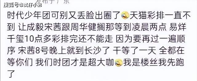 不仅如此,就连他们的前辈易烊千玺在昨晚十点多彩排完也不能离开,必须要等时代少年团到了整体再走一遍流程才行,后来,易烊千玺的粉丝在现场透露凌晨两点多的时候他还在彩排,直到早上才结束,因此,其他艺人的粉丝都纷纷为自己的偶像抱不平,纷纷炮轰时代少年团耍大牌。
