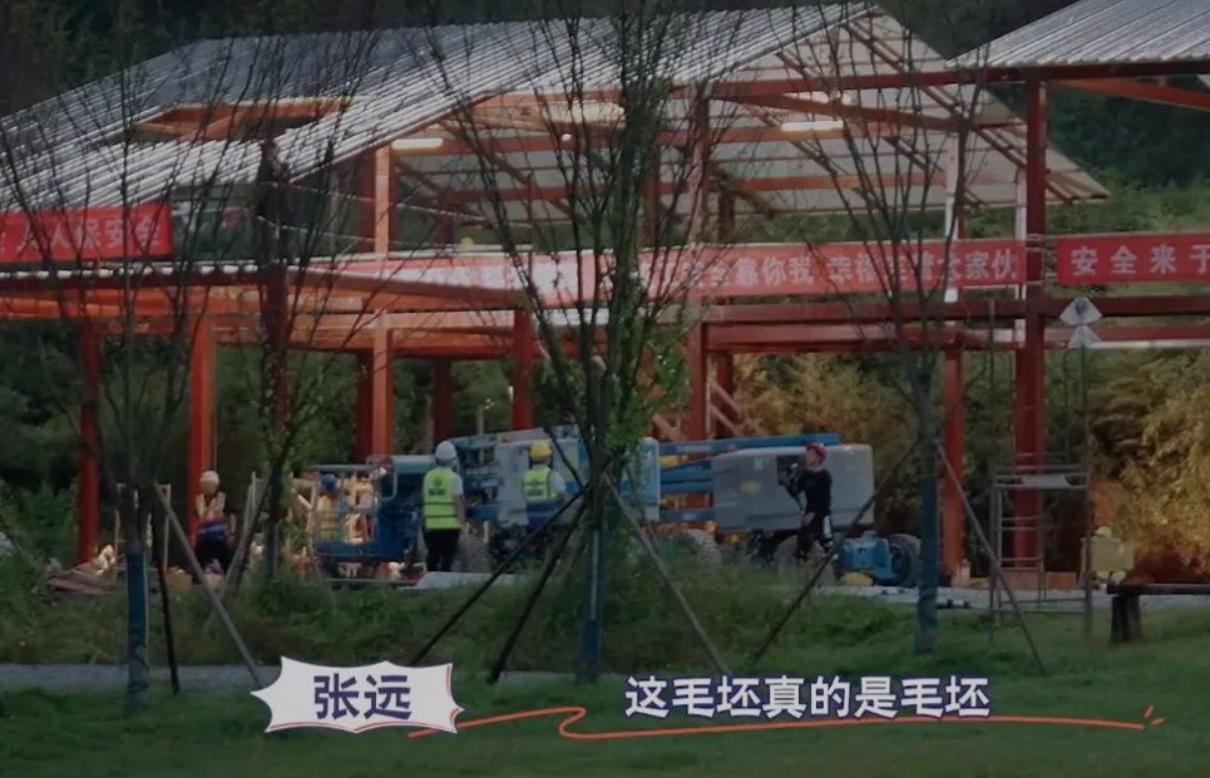 所以,比起当下各种慢综艺开民宿、开客栈,明星们到了现场就有几乎设备齐全的场地设施,“0713组合”的《快乐老友记》到了现场却只有几个钢梁撑起的房屋架子,连遮雨的玻璃钢瓦也才刚刚加上去。