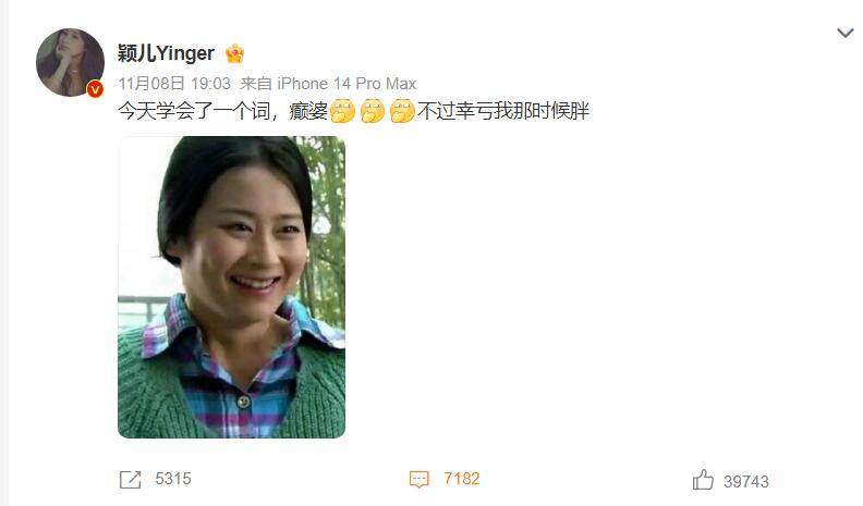 原标题:颖儿发文回应《千山暮雪》中被“肘击” 幸亏我那时候胖