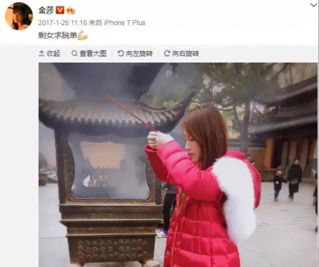 众所周知,金莎有一颗渴望爱情的心,会去求姻缘,在镜头前也提到不享受单身生活。