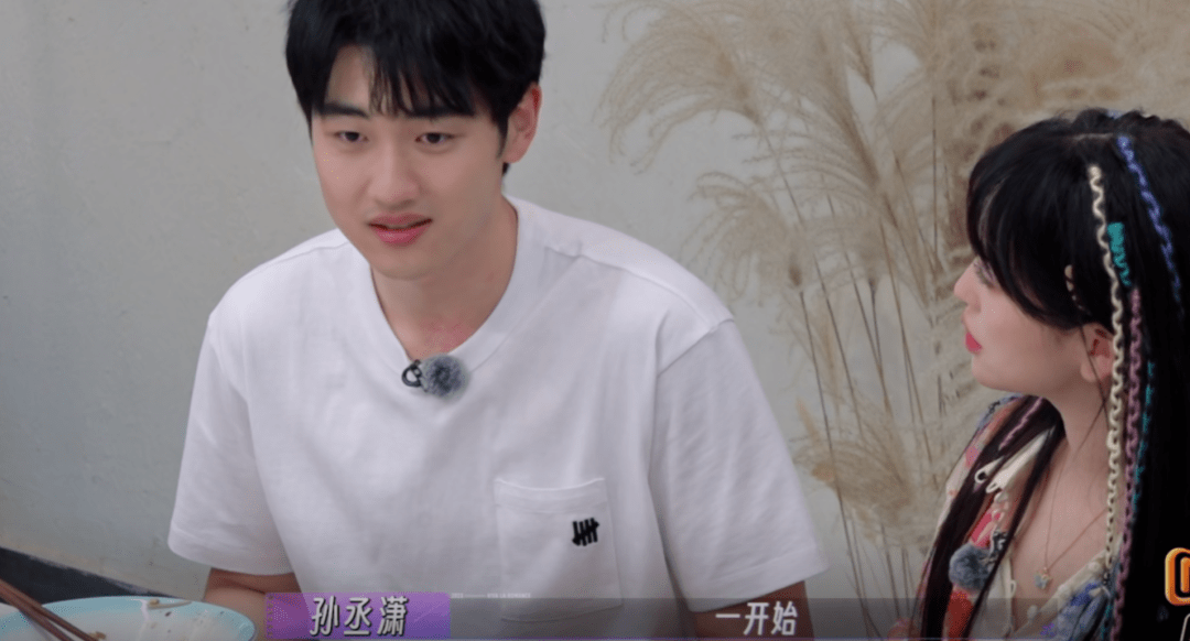 孙丞潇感觉不太适应镜头,金莎有意提醒男友保持形象,例如吃饭嘴角要擦。