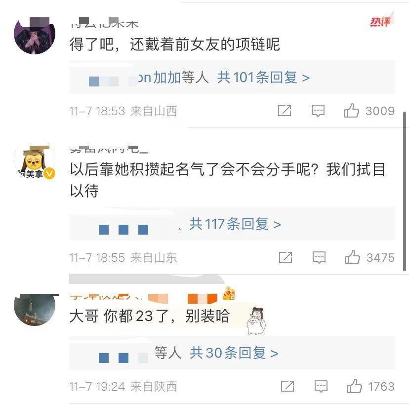 评论区前几条热评有质疑他是在利用金莎积攒名气的,有说他还戴着前女友项链。