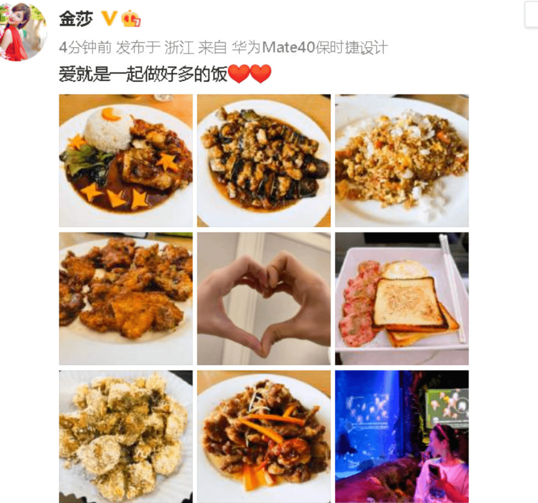 金莎在社交平台晒过男方做的饭↓