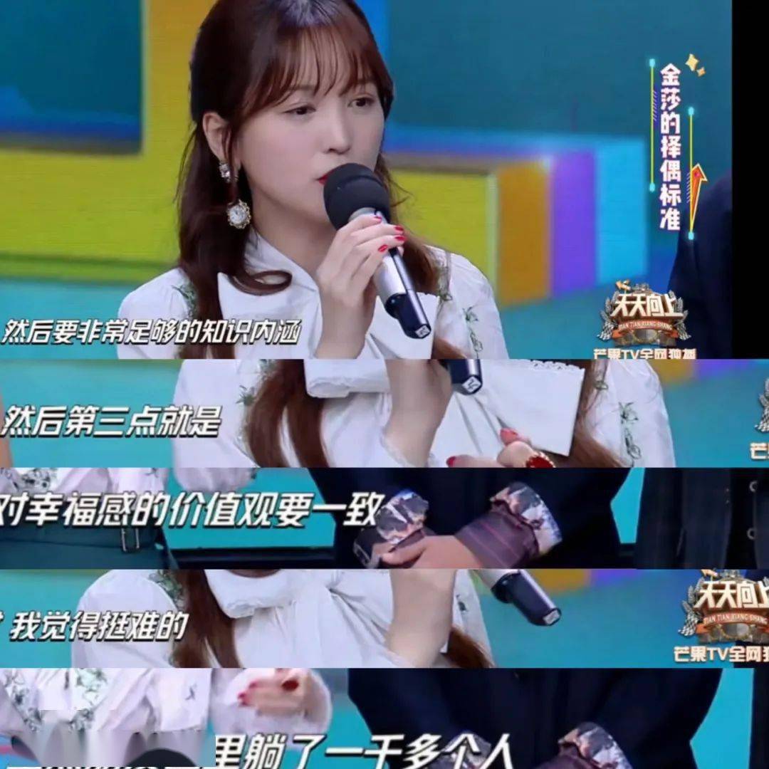 金莎的择偶要求出了名的详细具体,不会因为年龄勉强自己,渴望谈一段浪漫的恋爱。