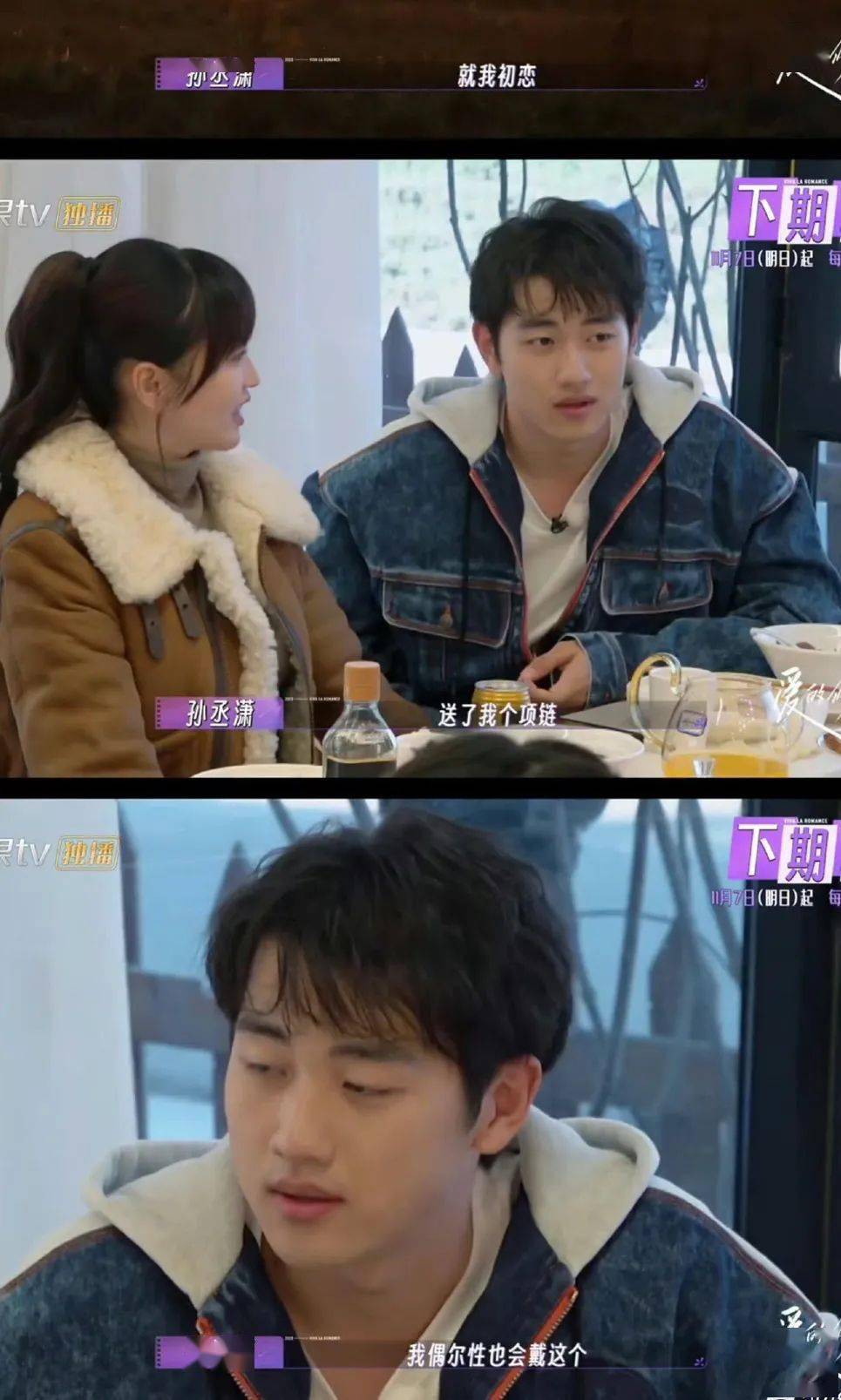 节目里有个片段,孙丞潇偶尔会戴初恋送的项链,金莎对这点觉得不舒服。