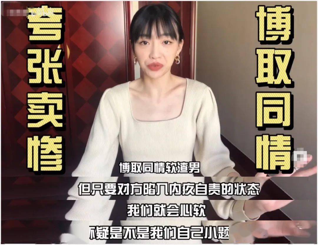 每每她有所怀疑,对方都会花式卖惨,激起她的保护欲,让女生自我怀疑是不是自己做得不够好,再对他付出更多。