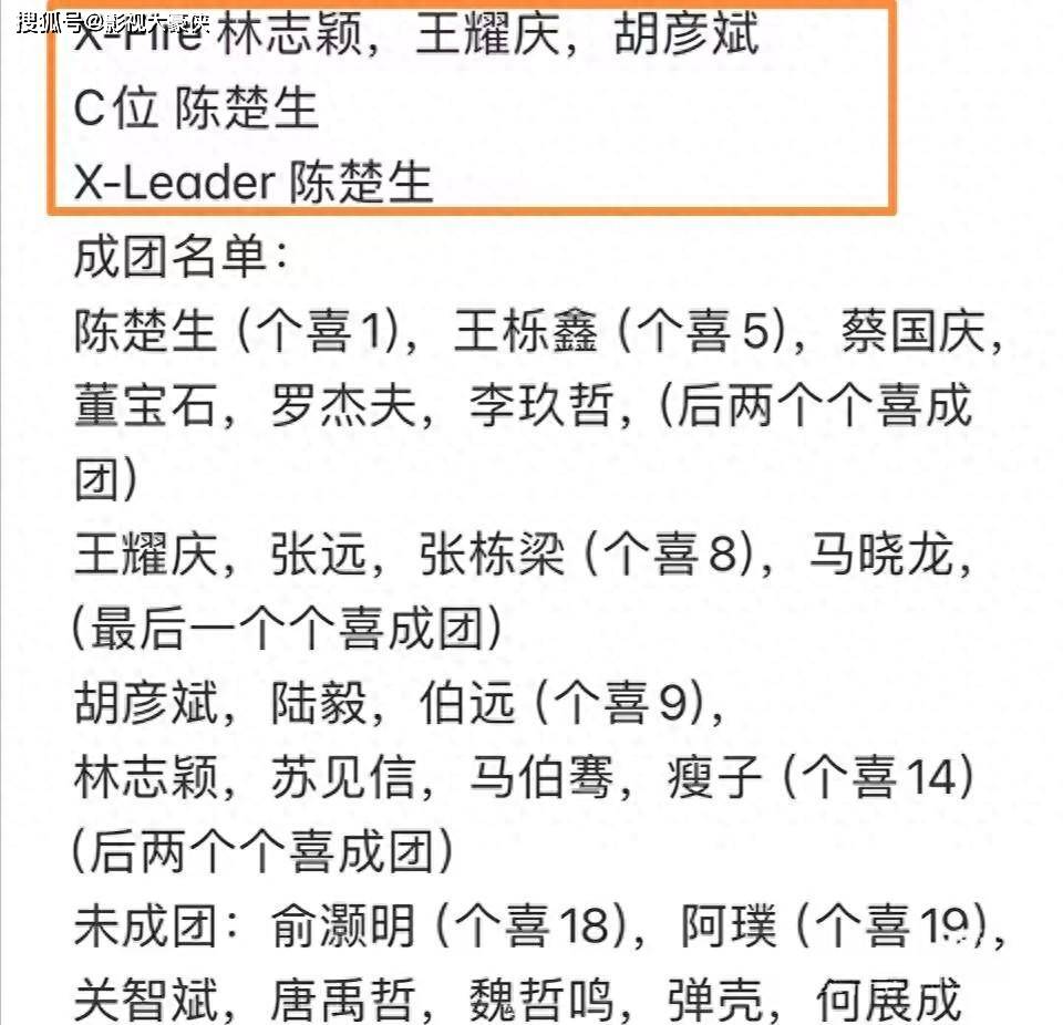 《披荆斩棘》第三季总决赛线下录制于11月5日圆满落幕,各位哥哥们经过了近两个多月的激烈角逐,终于诞生了成团名单。这一季的成团人数与前两季相同,依然是17人成团,C位和X-leader均由陈楚生获得,X-fire则由林志颖、王耀庆和胡彦斌获得。