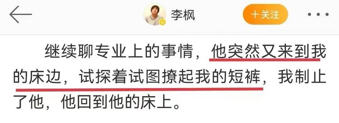 当时李枫接受采访大谈郭敬明骚扰他的细节,和近日发文描述大致相符,称郭敬明聊着聊着天,就把手放到了自己的身上,还对自己进行抚摸。