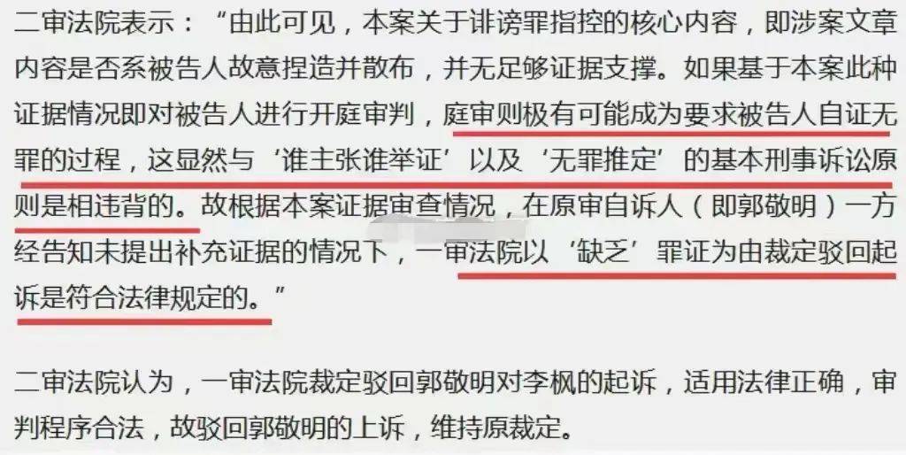 不过郭敬明却败诉了,一审时法院认为郭敬明指控李枫诽谤自己这件事,缺乏一定的罪证,驳回了郭敬明的起诉,他仍然不服提起了上诉,但二审时上诉仍然被驳回。