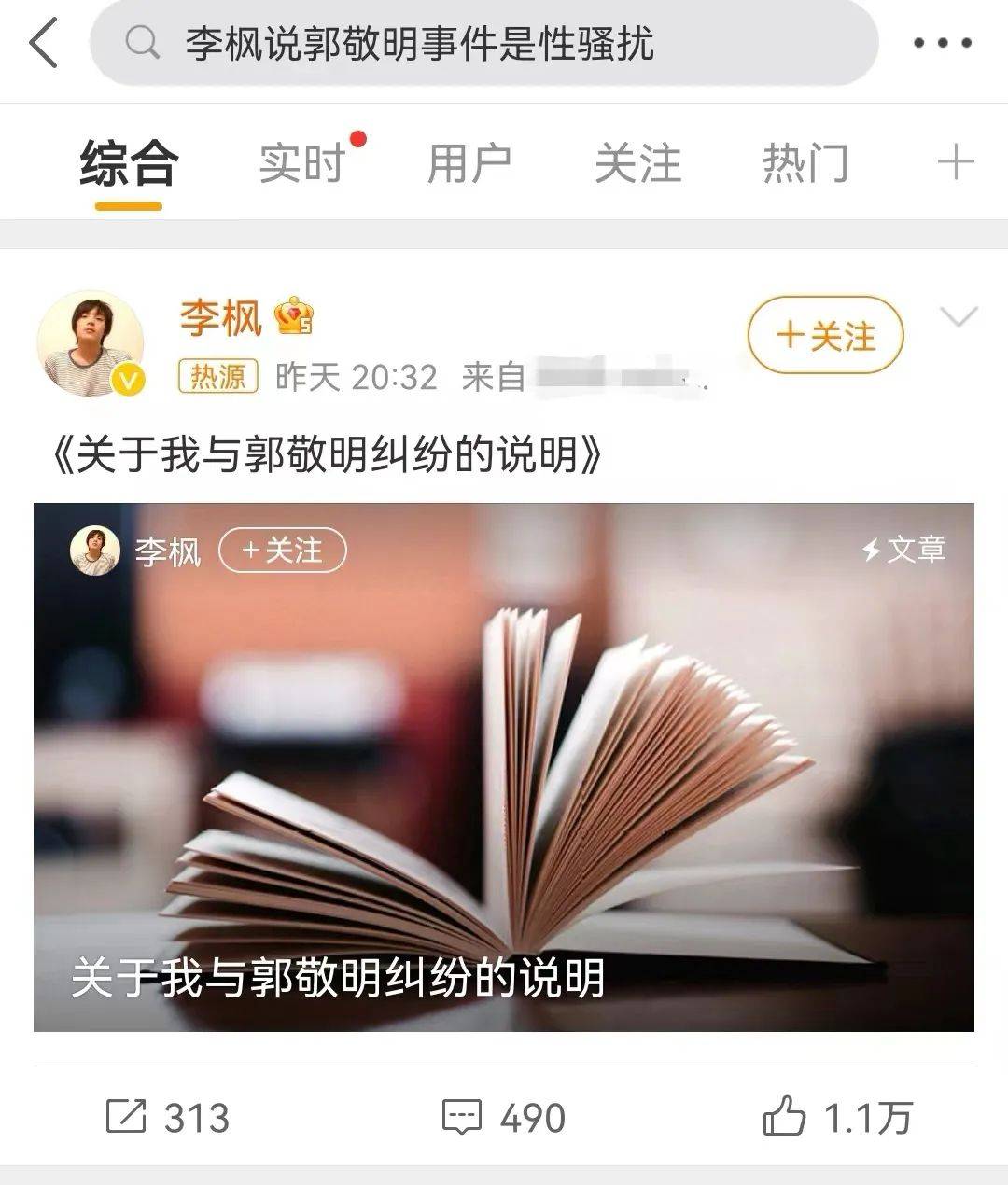 郭敬明又摊上事了!近日,作家李枫再次发文指控郭敬明对自己进行了性骚扰,一度登上热搜,闹得沸沸扬扬。