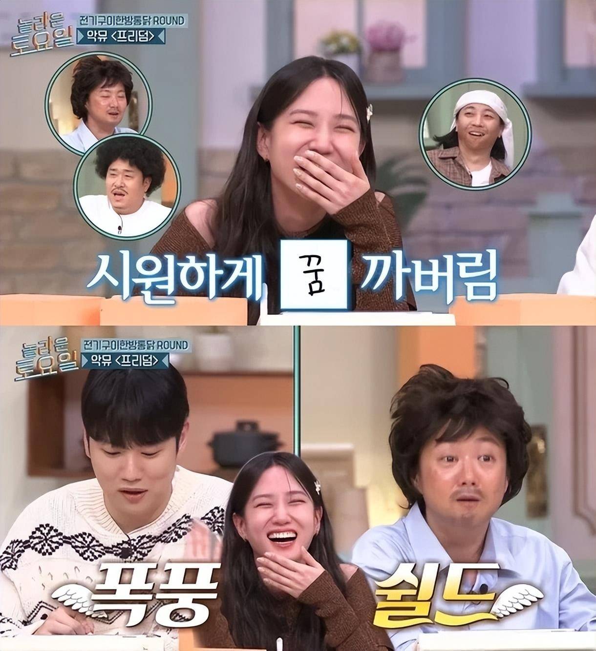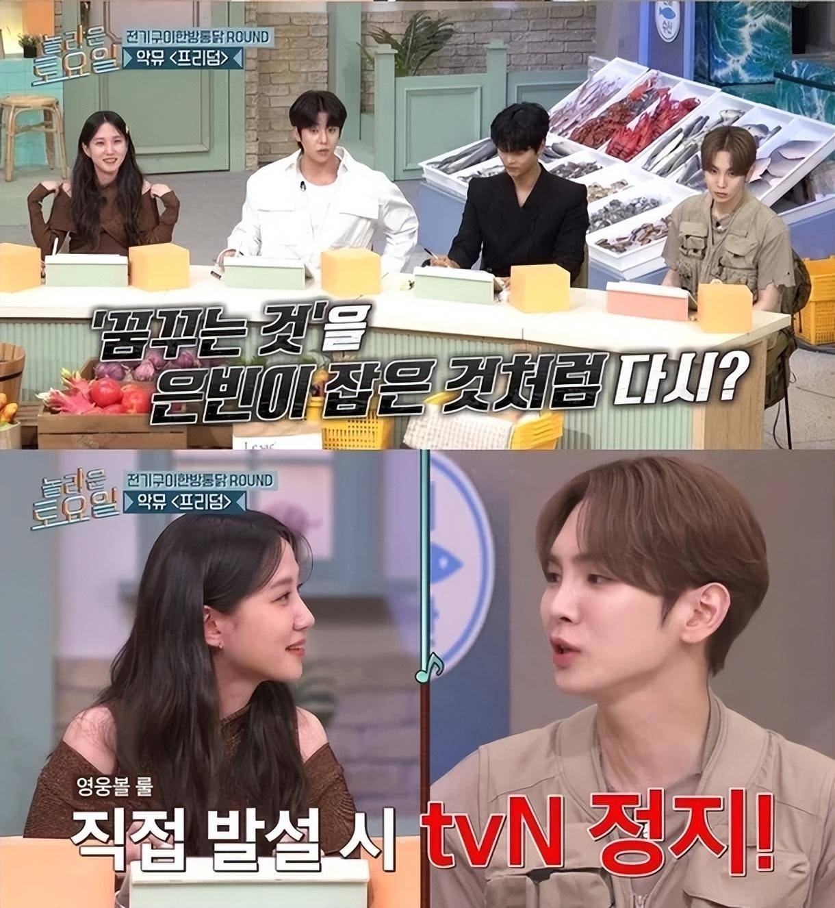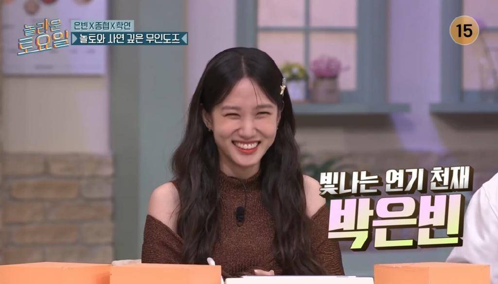 众所周知,朴恩斌从小就以儿童演员的身份从事童星工作,因此节目成员们对金东贤的荒谬问题哈哈大笑。金东贤迟来地解释道:“我以为你是偶像出身,后来才变成演员” ,申东烨笑着说:“她从小就开始演戏了。”