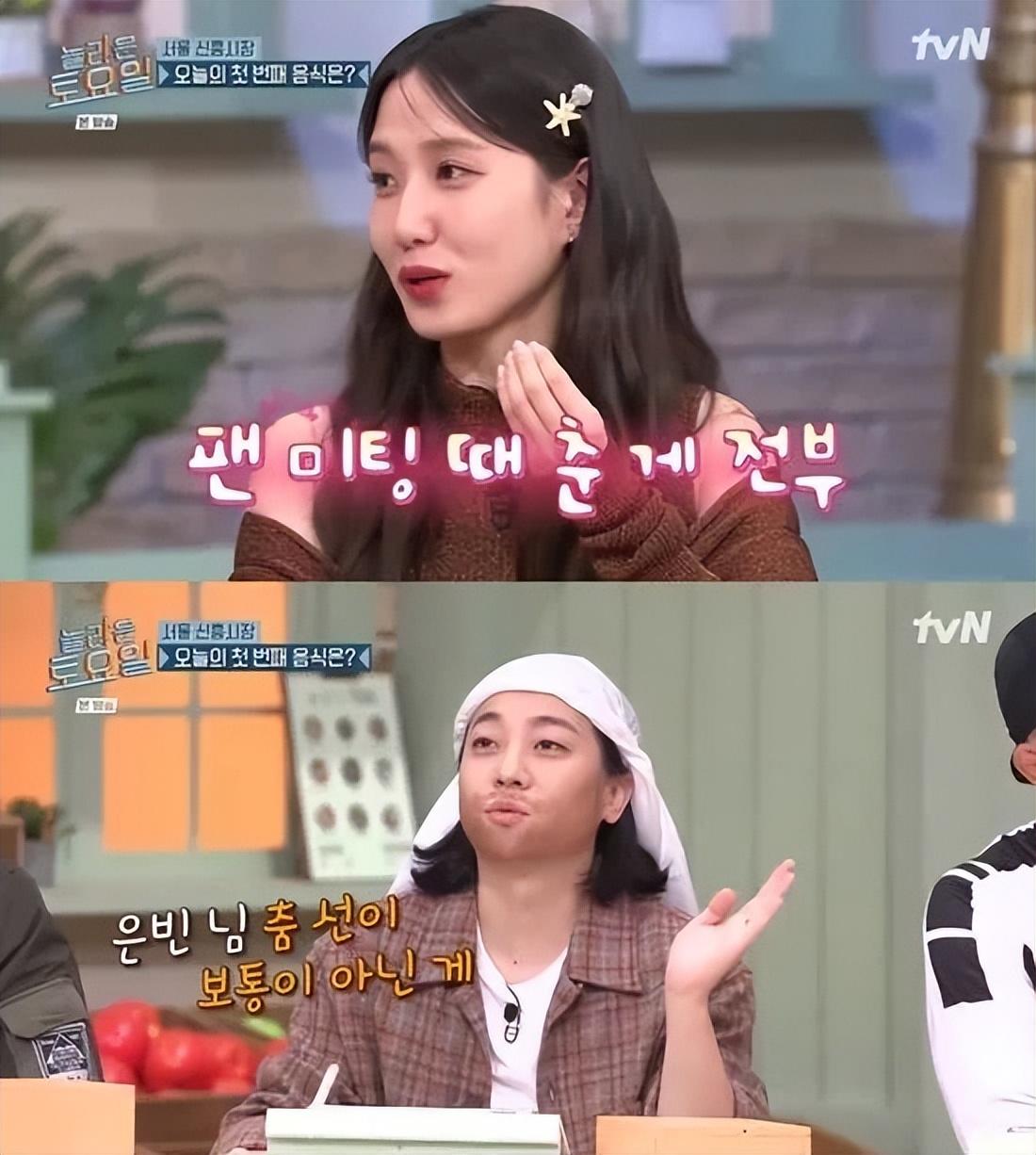 朴恩斌在粉丝见面会上随着Blackpink的《Shut down》歌曲跳舞的视频被公开,她尴尬地笑了。看到这一幕的朴娜莱问道:“你跳舞很擅长,你跳舞不是很多吗?”,朴恩斌表现出谦虚的态度说:““这只是我在粉丝见面会上跳的舞蹈 ”