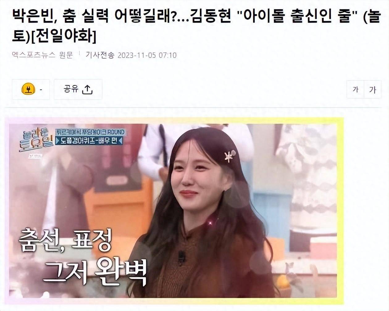韩国女星,演员朴恩斌曾是童星,但因为她精湛的舞蹈,引发了她是否是歌手出身的演员的看法,“我以为她是偶像出身”。