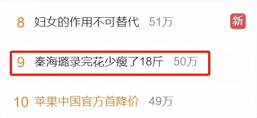 那边,大姐秦海璐录完《花少》瘦了18斤,就已经冲上热搜。