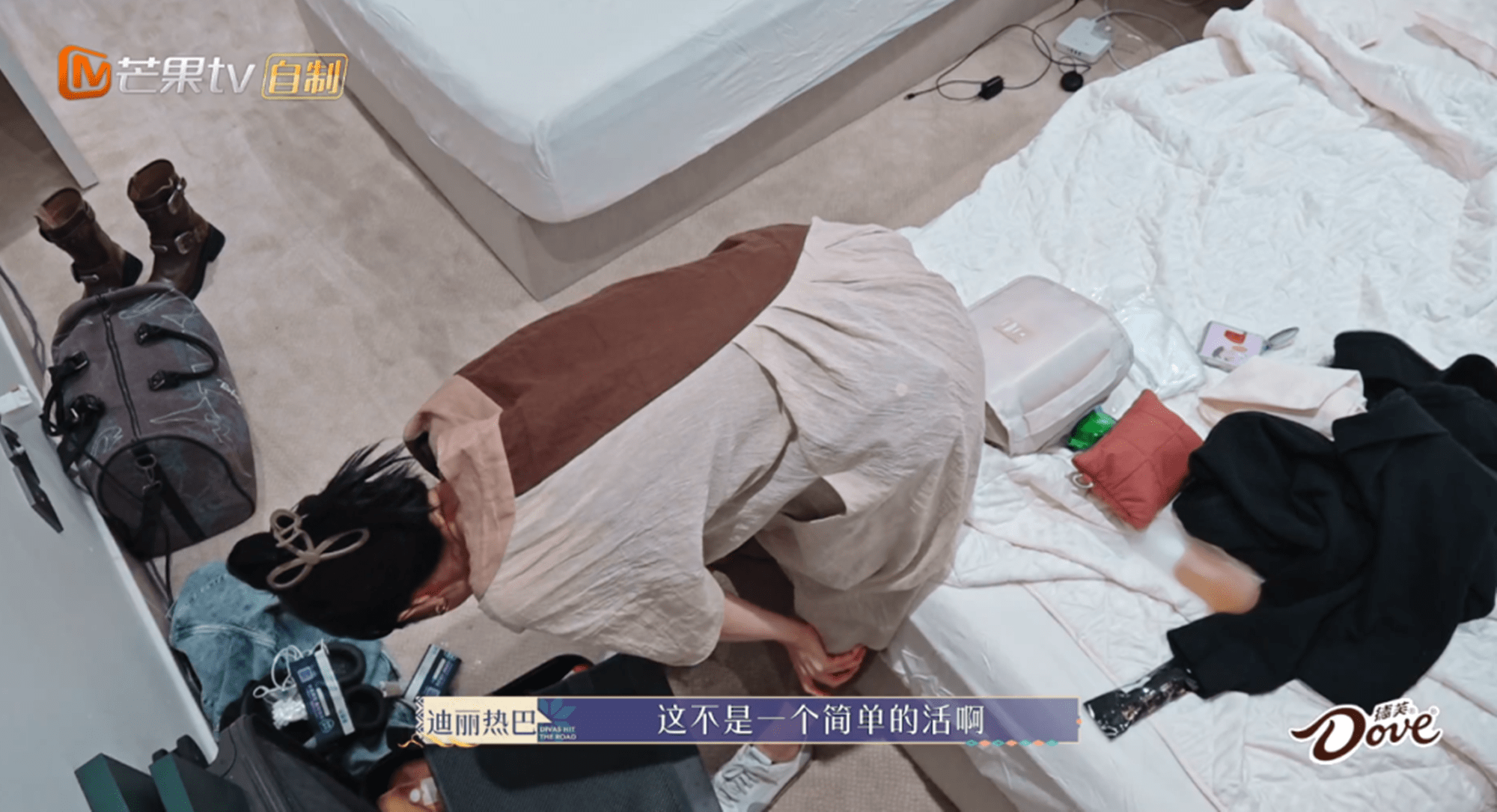 秦海璐自告奋勇要睡大床房,因为这个房间里的卫生间供两位男嘉宾使用,更是快言快语道:“我结婚了,没关系。”