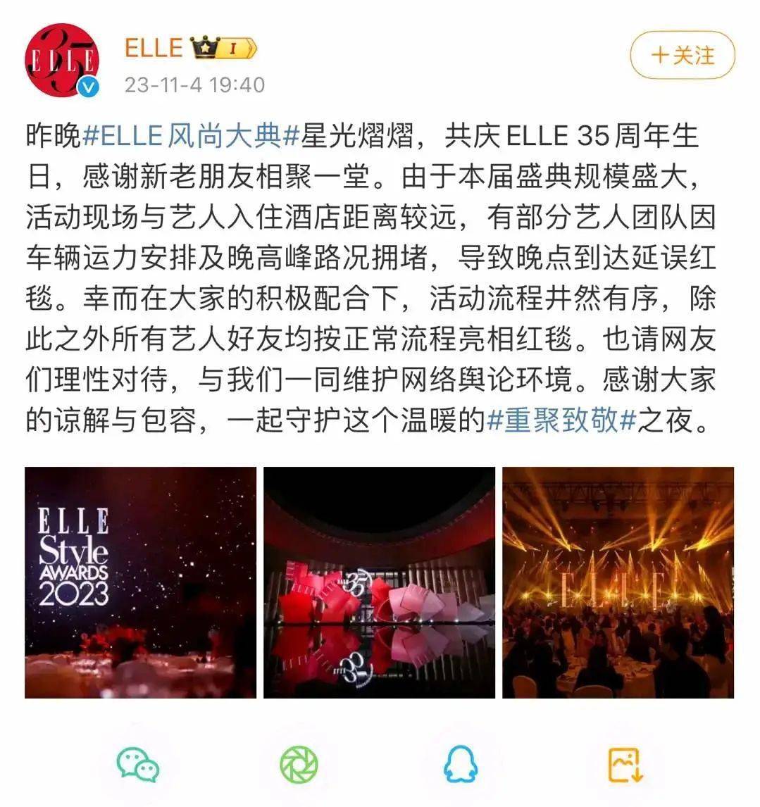 有网友爆料昨晚的Elle红毯出现了艺人耍大牌不肯提前走红毯的情况,最后是李现放弃了跟Elle全球负责人一起走红毯的机会,独自一个人出来救场。红毯耍大牌的事情常见了,但是昨晚上这个,基本上没什么耍大牌的必要,咖位都很明显了。几家粉丝撕来撕去撕了一整天,最后还是Elle官方出来发声明说是有部分艺人团队由于堵车问题来晚了,在现场艺人的积极配合之下,活动没有出岔子。