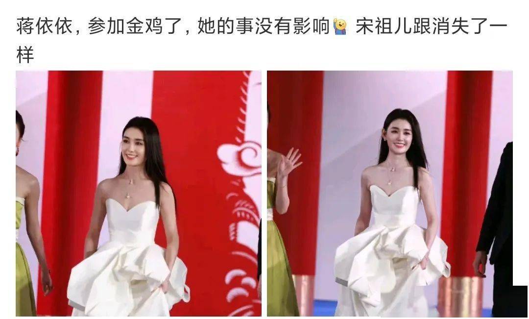 宋祖儿当时出事的时候不是还拖下水了一个蒋依依,今天蒋依依出席了金鸡颁奖典礼,还上了一个第三次去金鸡的热搜,看样子她是没事了,所以就有很多网友在问,跟她情况一样的宋祖儿是不是也可以收拾收拾准备开始工作了?她们两个人情况可不一样哈,蒋依依涉及的金额连宋祖儿的零头都比不上,并且她团队在舆论发酵第一时间就甩出了证据,把蒋依依给择的干干净净的了。这种税务方面的问题,只要认错及时,补救措施来的快,上面还是愿意给一点机会的,所以蒋依依现在并没有被划到劣质艺人的名单里面。