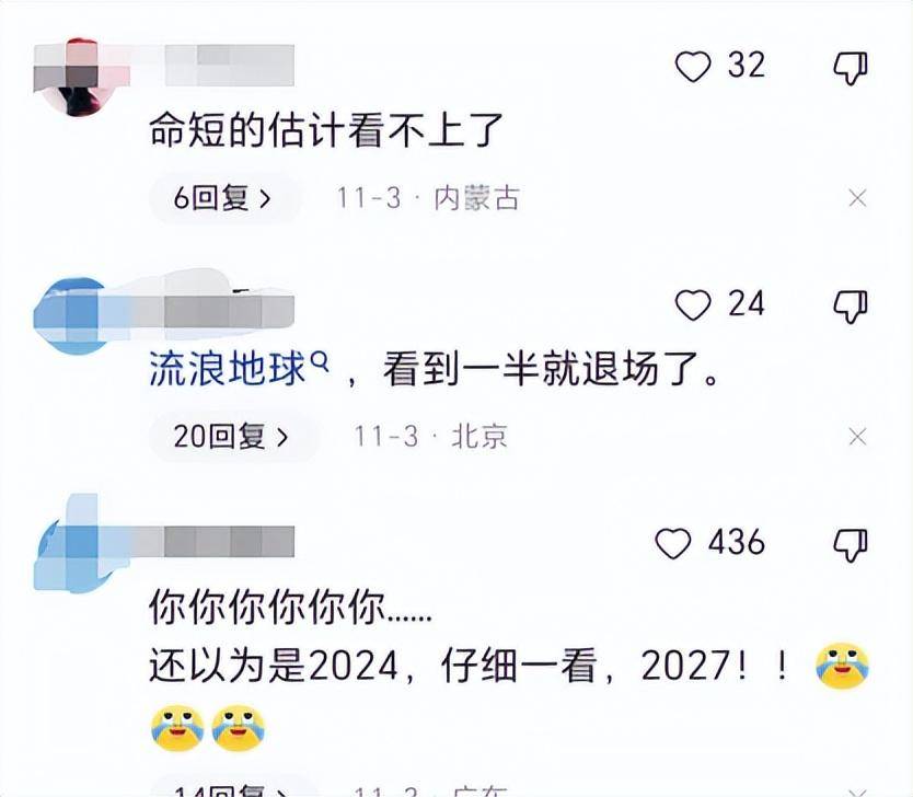 网友们看到后,很多都以为是2024年,结果仔细一看的确是2027年,不少观众都不太相信自己的眼睛,一度还怀疑这是吴京打错了。