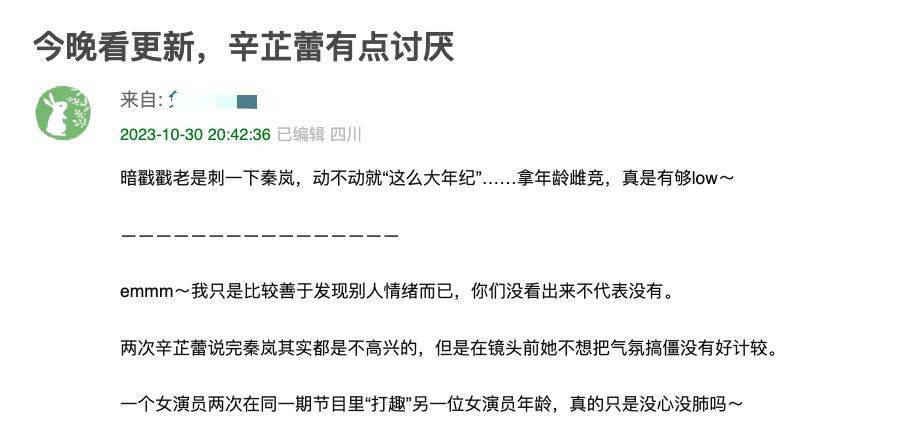 原标题:《花少》辛芷蕾被吐槽低情商,频繁强调秦岚年龄大,对方黑脸