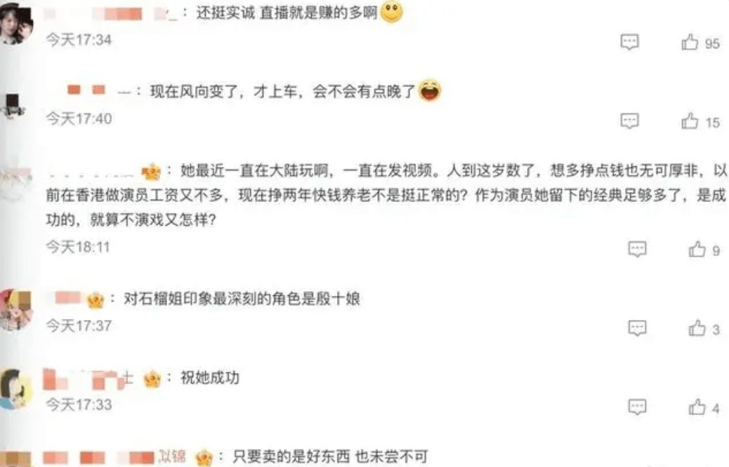 虽然高龄年纪还在奋斗,但是她很满意自己的这个选择。称她前半生一直在拍戏,但通常都只能演配角。再加上如今演员行业鱼龙混杂,很难碰到很好的剧组,经常会为了控制成本而导致呈现不出高质量作品。但是当带货主播就不一样,不仅可以在拍摄短视频时发挥自己的演员优势,还能有绝对的话语权当自己的大女主。