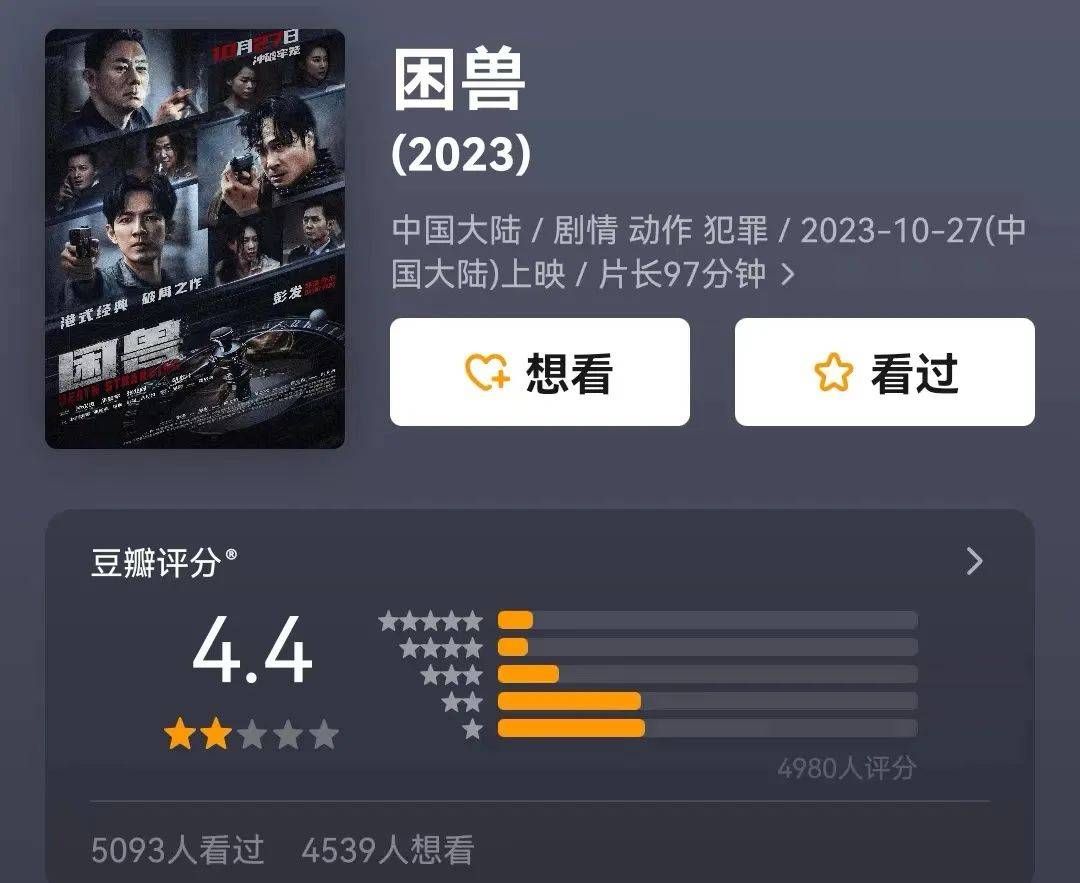 《困兽》的导演在宣传时,谈到港片的没落时不由泪目,一度还让人以为他的电影能做出多大的改变呢,没想到到头来还是烂片一部。