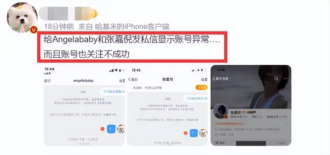 另外,网友发现杨颖和张嘉倪发私信,也显示账号异常,而且账号关注也不成功。