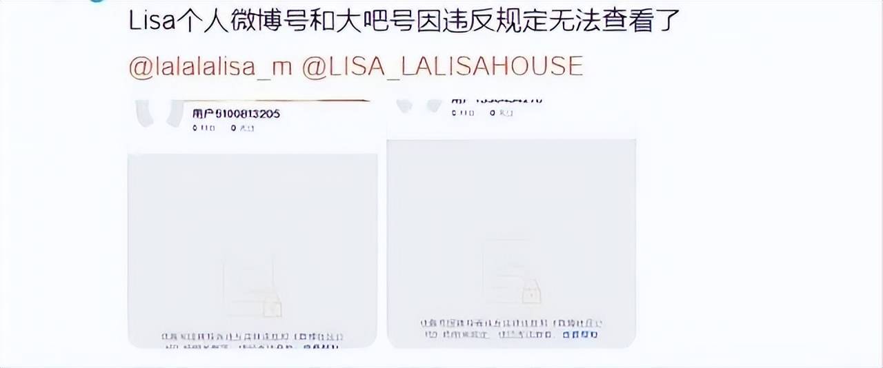 此前,Lisa的账号一直都是正常的,结果微博和大吧账号都无法查看,其中她微博写着因为被投诉违反法律法规,已经被灭了!毕竟她出演疯马秀的脱衣舞,被内地官方认为是低俗不检点的代表。