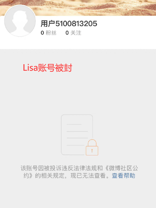 从显示的内容可以得知,Lisa微博被封的原因是该账号被投诉违反了法律法规,之前,Lisa的账号一直都是正常的,很显然,Lisa账号被封的主要原因可能是和出演疯马秀有关。