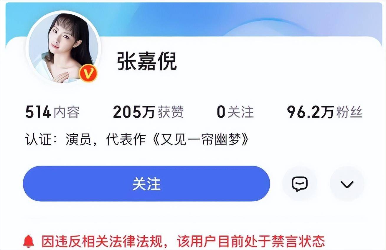 另外,张嘉倪和杨颖的视频账号被禁止关注。