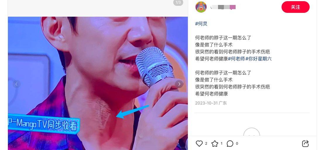 原标题:何炅综艺脖子出现一大片疤痕,被质疑是手术伤疤,引发健康猜测