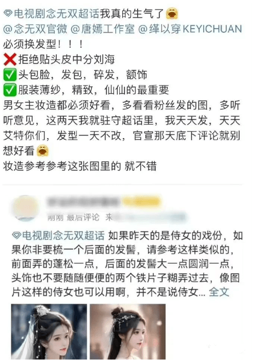 《念无双》剧组拍摄前期,唐嫣的路透照流出,粉丝们表示对妆造极为不满,纷纷开始维权,要求剧组给唐嫣换新造型。