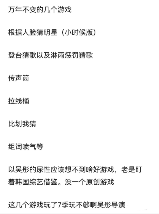 另一方面还是内容的问题,观众称吴彤每季就只会玩那么几个游戏,毫无新意。
