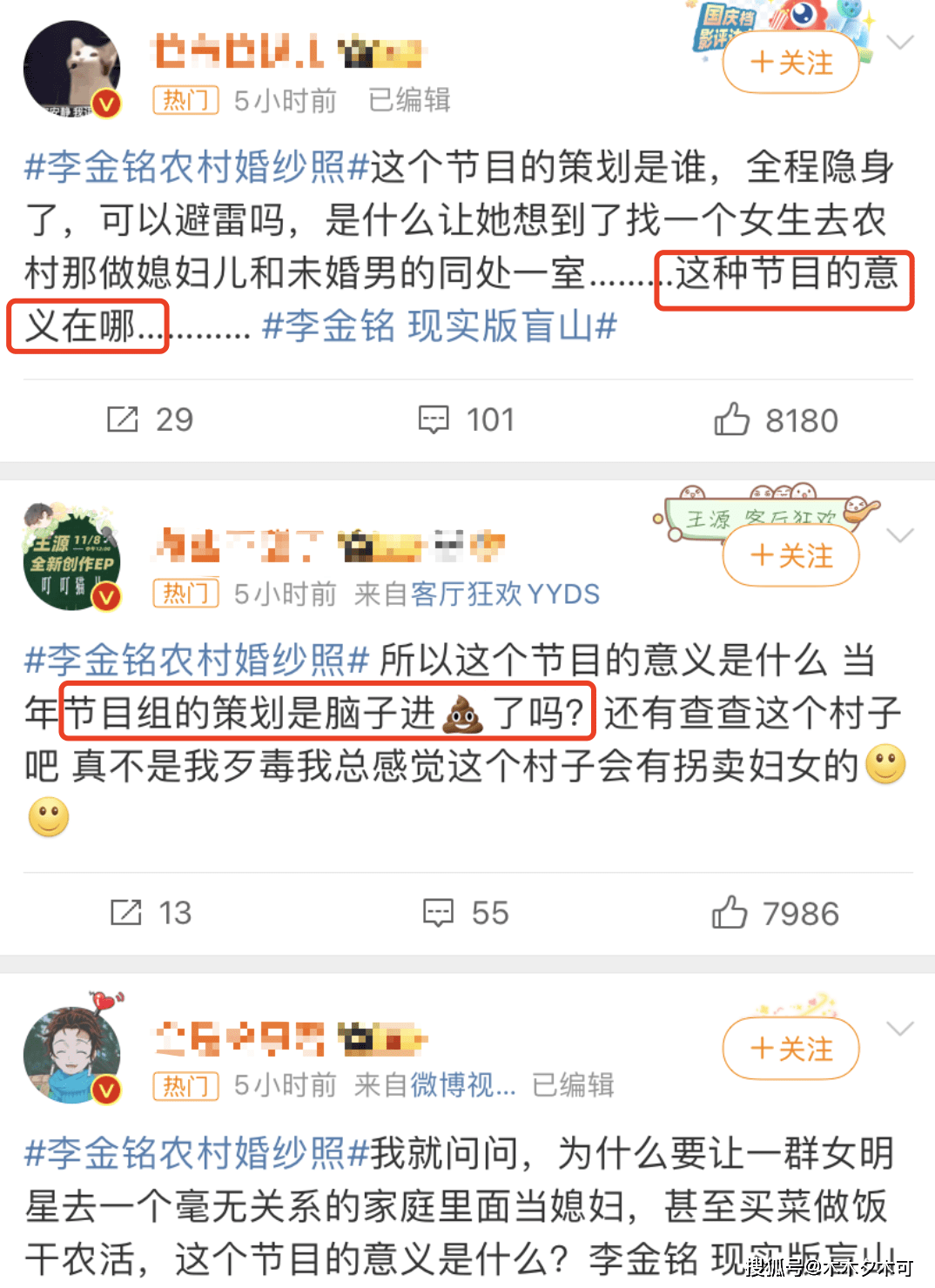 也有网友质疑做出这档节目的策划人,脑子是不是进水了?这样的节目意义在哪里?如此歹毒!