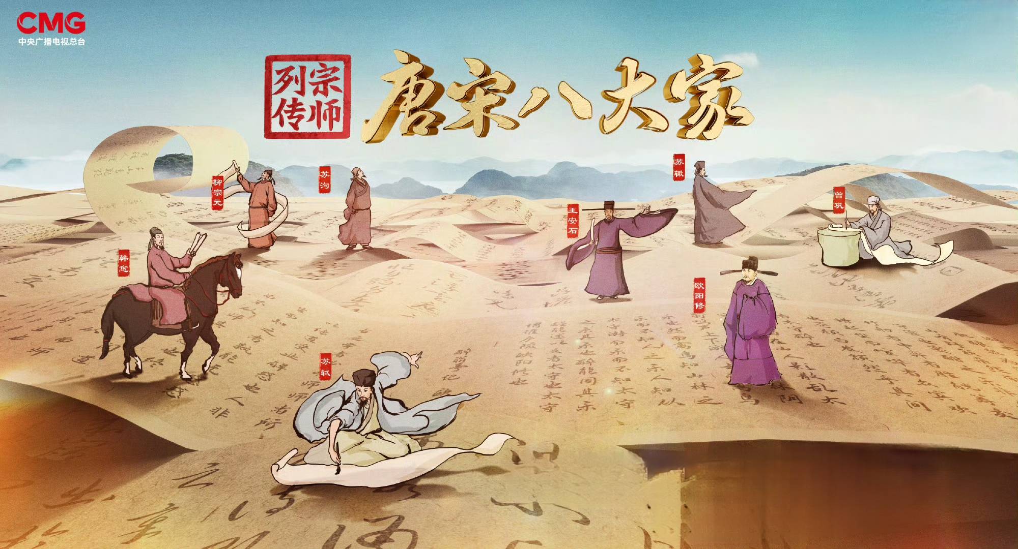 央视官宣《宗师列传 唐宋八大家》于10月27日开播,这是综合频道在2023年重磅打造的又一档大型文化节目。此前《非遗里的中国》《美美与共》《山水间的家》第2季,同类型节目先后亮相综合频道周末黄金档,取得了观众口碑与收视率都不错的成绩,真正做到了“满屏皆精品”。如今随着《唐宋八大家》的推出,综合频道精品节目不断。