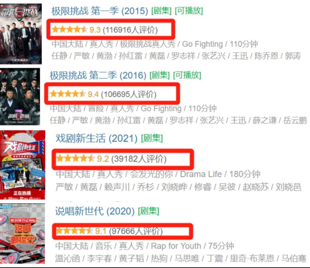 以往的《极限挑战》、《戏剧新生活》、《说唱新世代》…