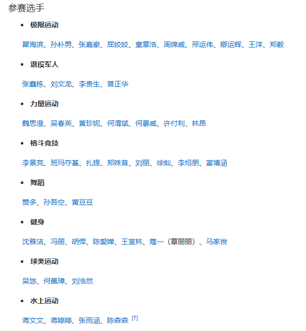 极限运动、退役军人、力量运动、格斗竞技、球类运动、水上运动……