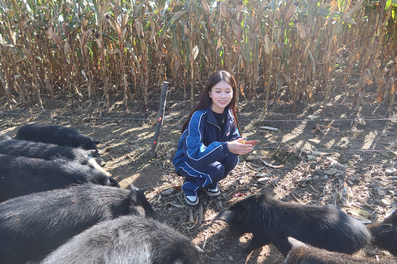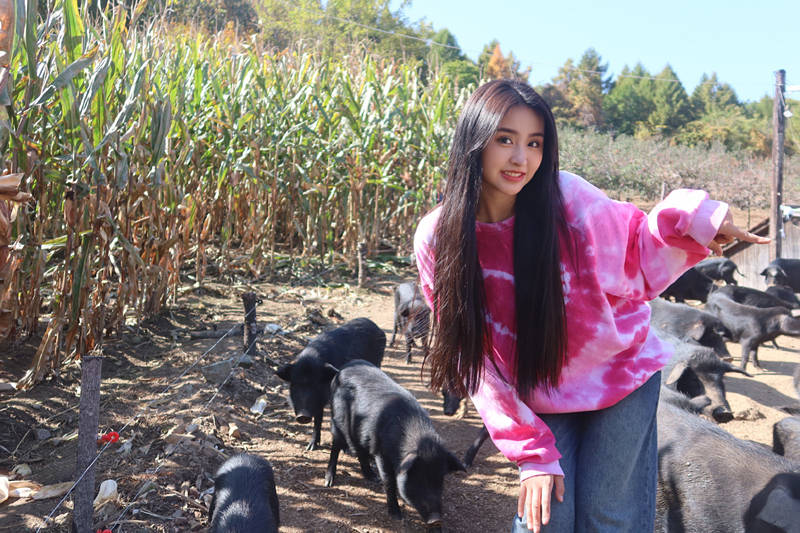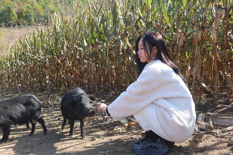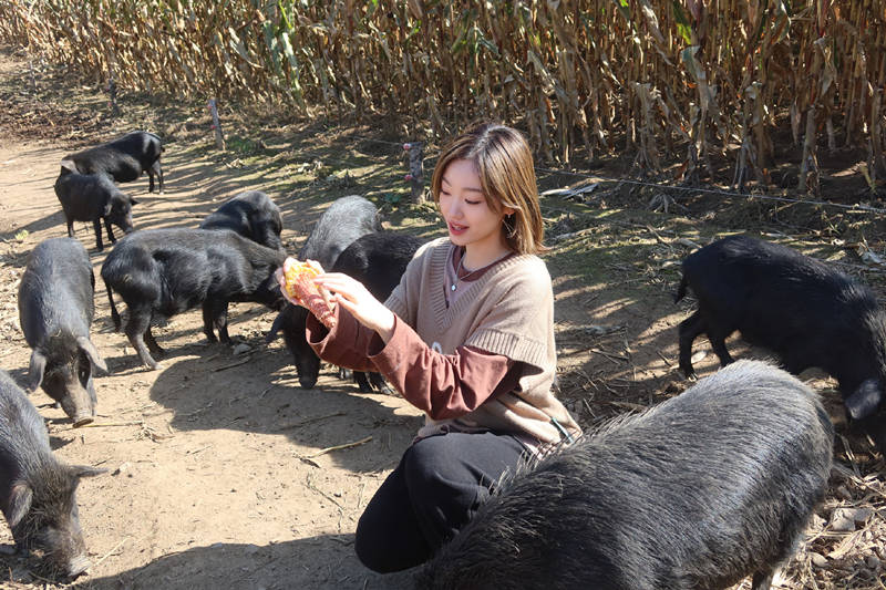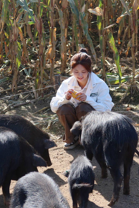 然后,是上山,给黑猪们摘苹果。话说,《人不怕出名猪不怕壮》这档综艺节目,要是播出完毕之后,估计正好快过年了,我感觉,这群女团谁出道,谁卷铺盖卷,我不关心,我最关心的是,这批黑猪肉怎么购买?要不是贵的离谱,我想买几斤,留着过年招待客人用。吃这么好食物长大的黑猪肉,一斤16或者再靠上一点,都不能算太贵。