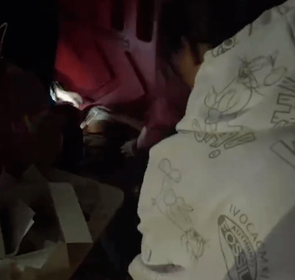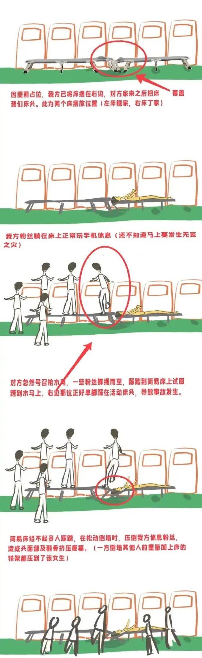 檀健次粉丝踩到床上抢东西,一时间不少人蜂拥而上,塑料床根本承担不住那么多人的重量。