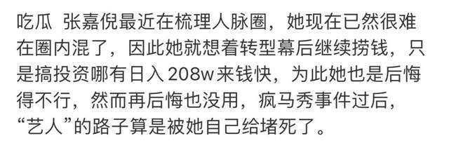 为了扭转这一局面,知情者声称baby这段时间焦头烂额找了很多关系帮忙,甚至没少联系前夫黄晓明。就连杨颖的大粉也放弃抵抗,不再搜证澄清,而是直接发文表示想念,足以证明杨颖很难解封了。相对于杨颖而言,张嘉倪更是踪迹难寻,只能从网友的瓜料找寻她的痕迹了。